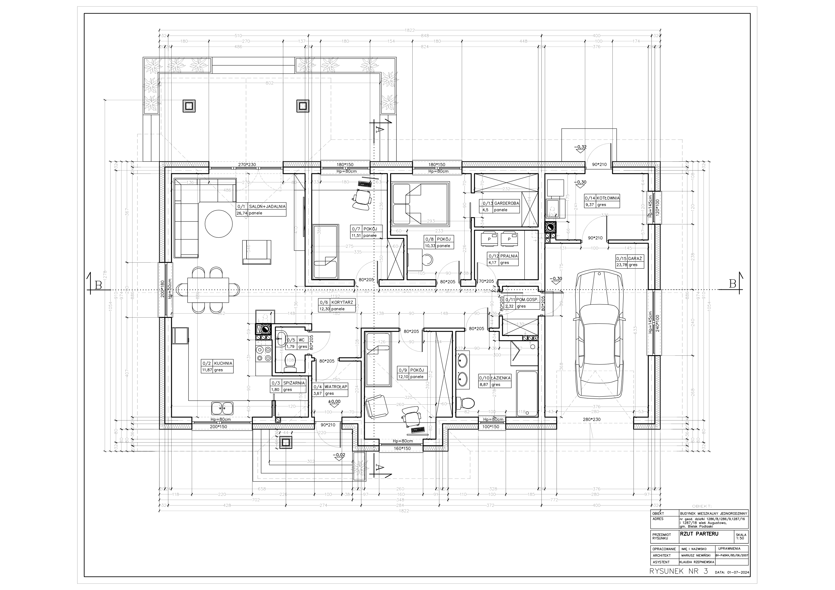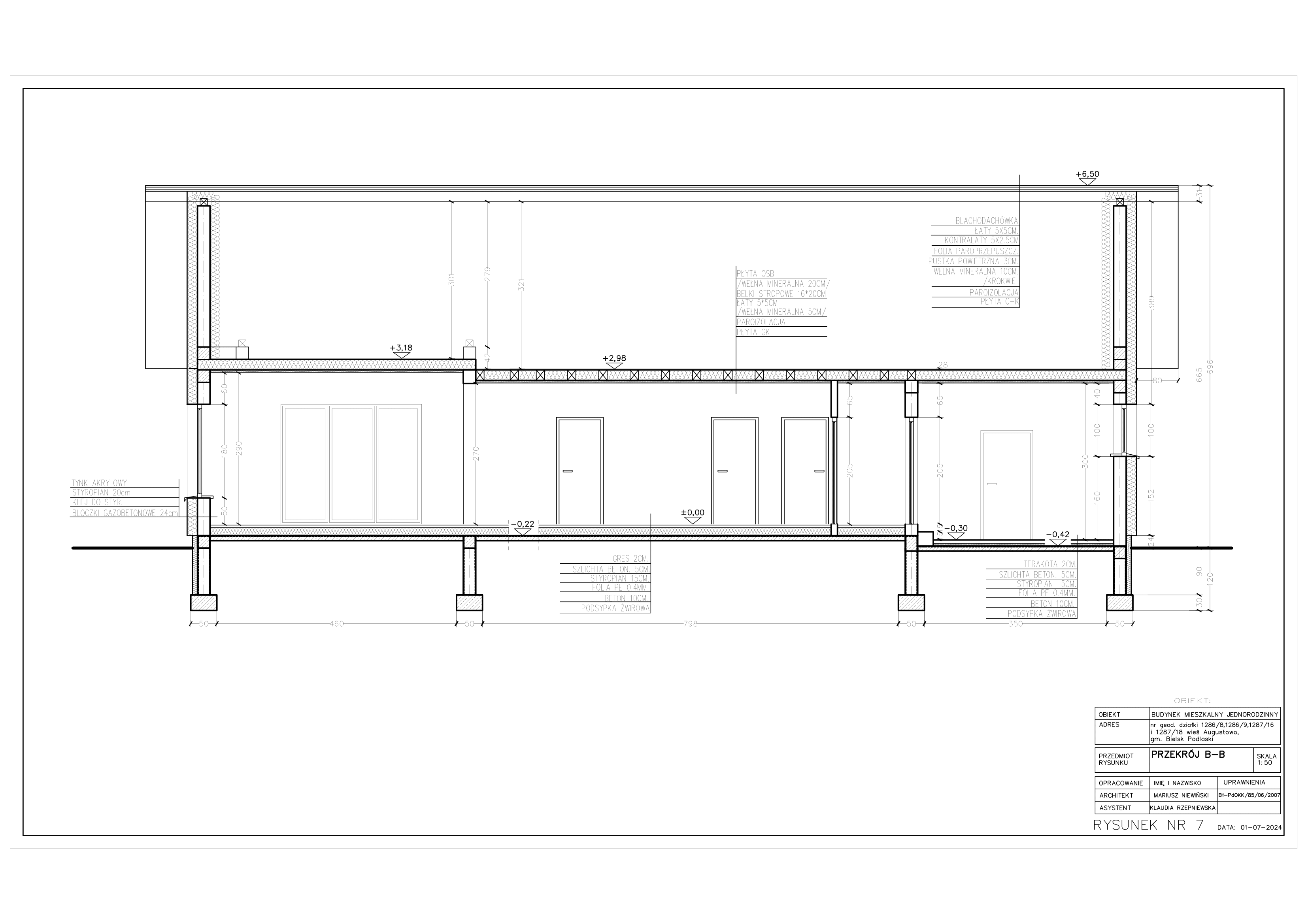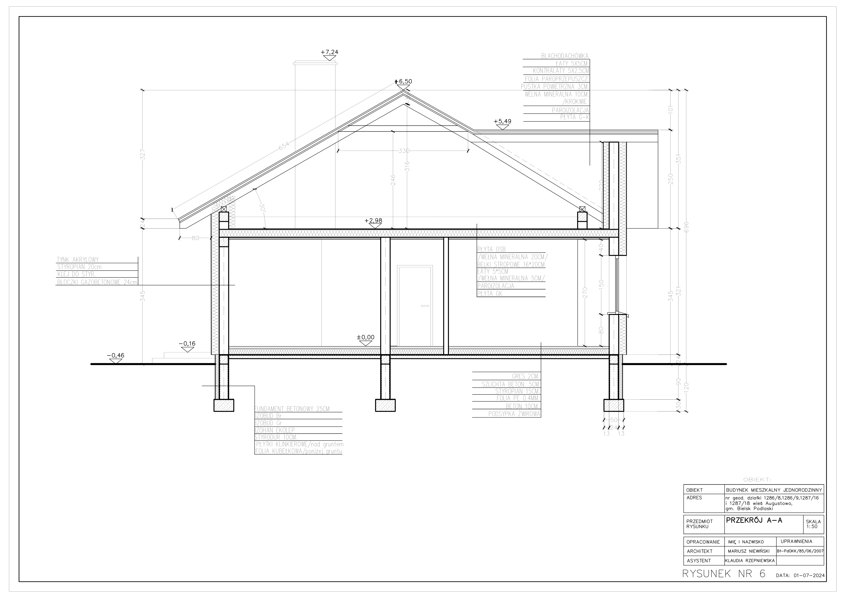 Obecnie pierwszy z domów został zbudowany na działce o nr geod. 1286/8 i 1287/16 o powierzchni 956m2. Działka o wymiarach 24 m 39.9 m.Na życzenie klienta wykonujemy kompleksową usługę ocieplenia ścian i dachu oraz doprowadzamy domy do stanu deweloperskiego.